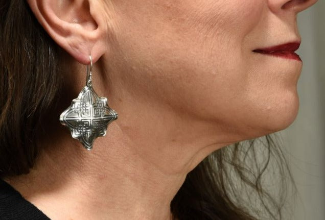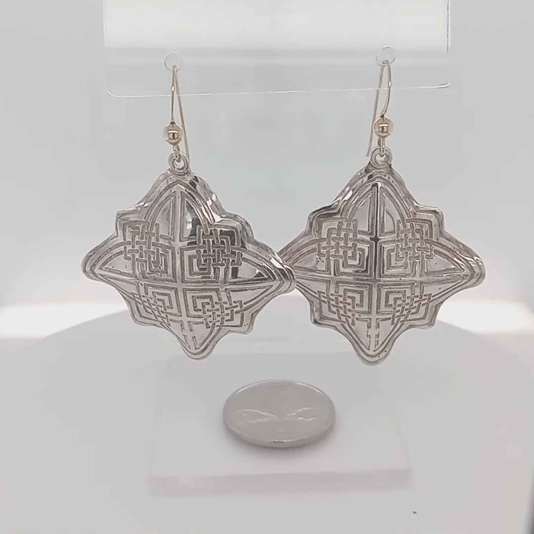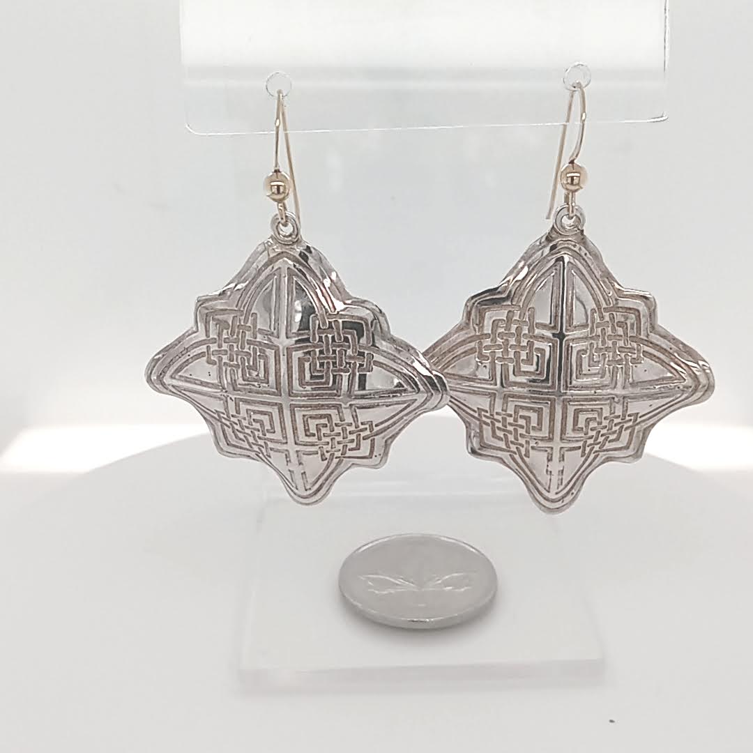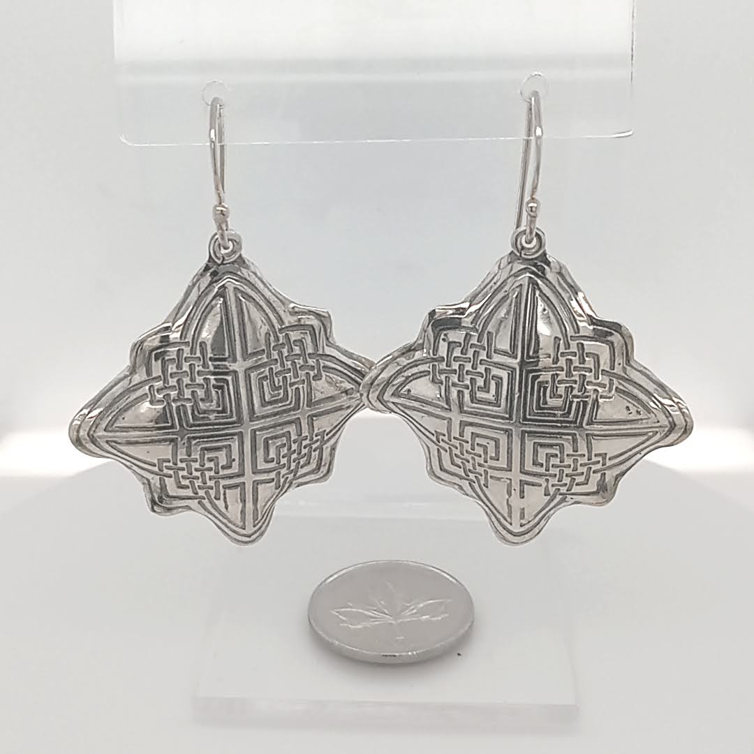 Sterling Silver Dangle Earrings Celtic Diamond etched hand formed Handmade Canada