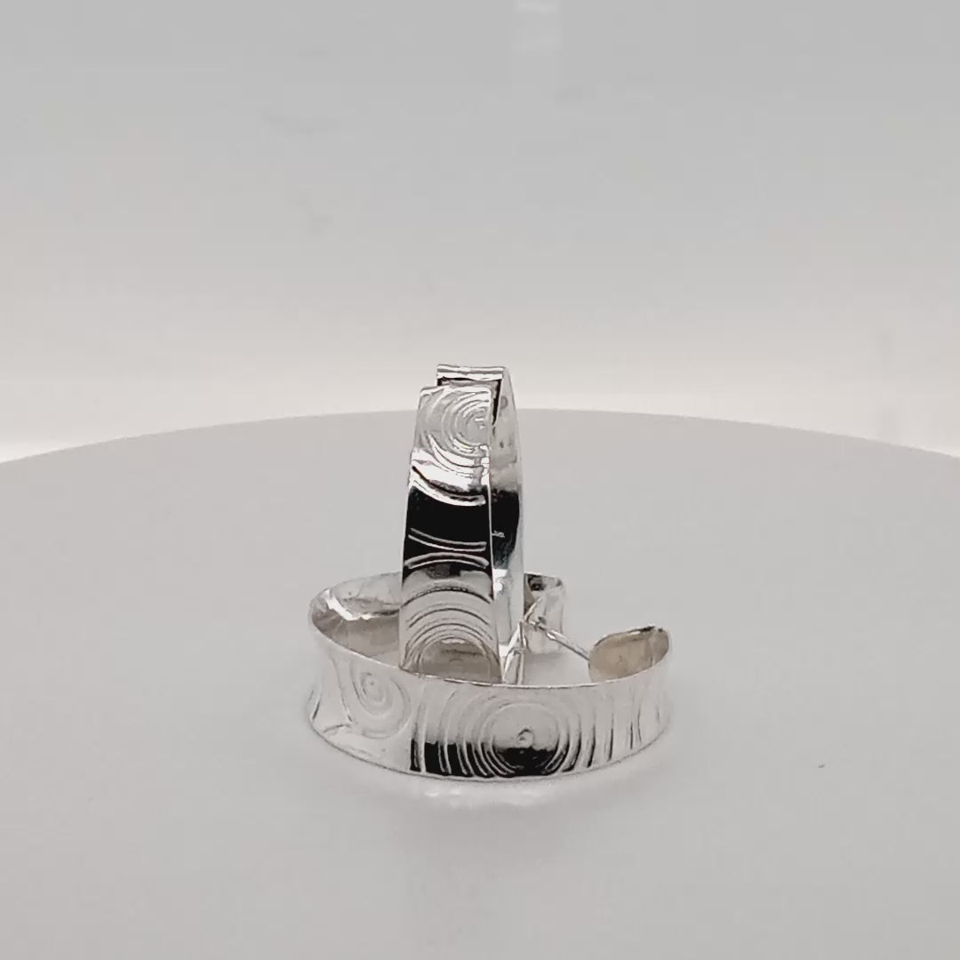 Sterling Silver Hoop Earrings Concave Etched Patterns Handmade Canada