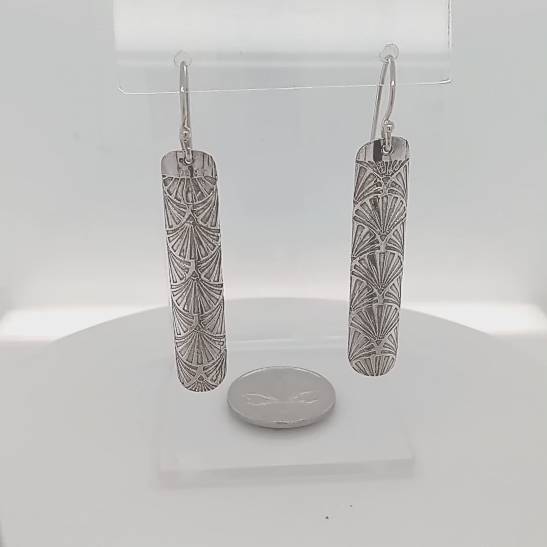 Sterling Silver Earrings Sleek Tube with Etched Fan Motif GemRapture Jewellery proudly Canadian handcrafted artisan jewelry